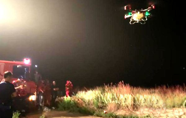老人因河水暴漲被困 無人機聯合
